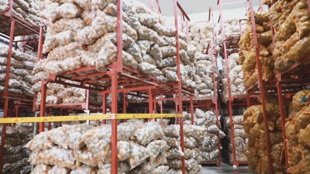 我们冷库有6个库。(记者:有6个?)现在库里面放的有土豆,还有白菜,等这个月底他们这个货走走,下面月底就开始上西兰花了,所以说库不闲着,库一不闲,我们老百姓就有活干。