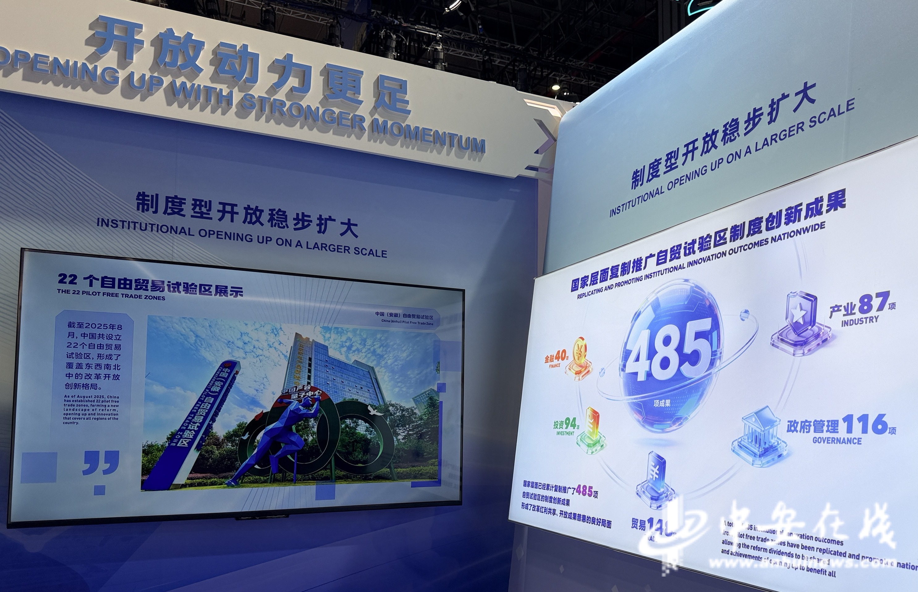 对外开放是进博会的筹办底色和鲜明特征,中国(安徽)自由贸易试验区与全国22个自由贸易试验区一起在“开放动力更足”版块集中展示。